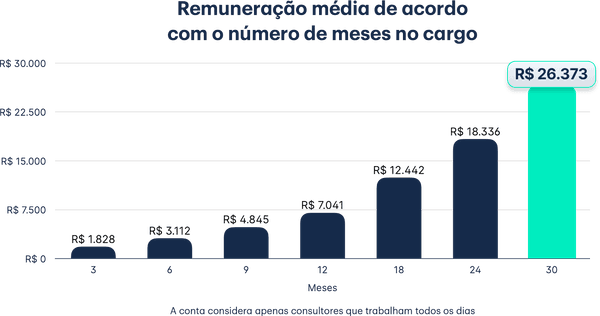 Nossos consultores com 2,5 anos de casa recebem em média